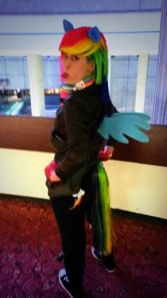 The rest of the convention had its own fair share of pony-stuff going on, often in its own very-Detroit style. Seen here is a Pinkie-Pie cosplay, which of course was armed when we approached him (on the streets we call that "strapped"). HotDiggedyDemon was there (though we rarely saw him after we left his booth), and at times some horse-music could be heard echoing thorough the halls of the massive complex. Even some of the staff were posturing themselves as pastel ponies. Seen below is a Seth Waifu Trixie Cosplayer.