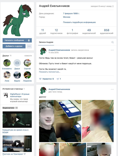 Horse News has learned that a college-aged brony in Moscow Russia, murdered a teacher with a knife, and posted photos posing with the body, before taking his own life with a circular saw.
